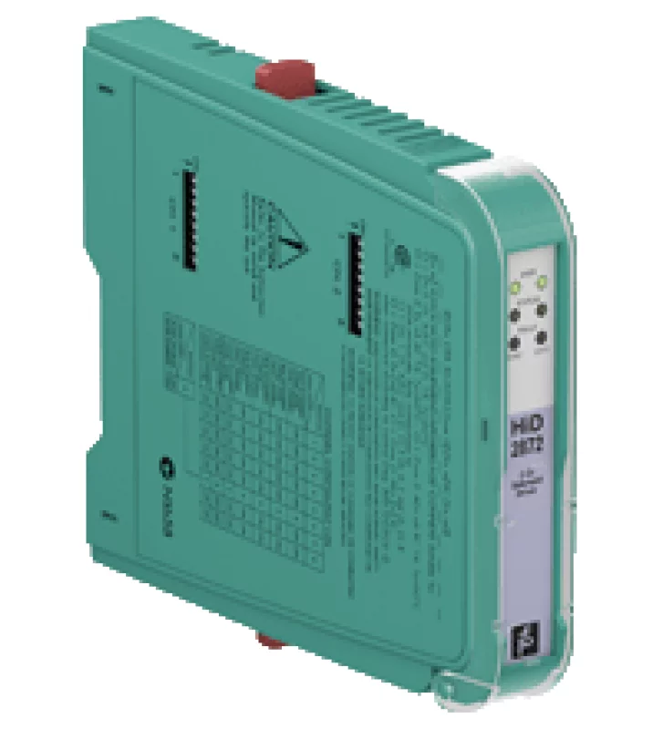 Техническое описание HiD2872 Основные Характеристики Тип сигнала Цифровой выход Параметры функциональной безопасности Уровень целостности безопасности (SIL) SIL 3 Поставка соединение SL1: 1a (-), 1b (-); 2a (+), 2b (+) Номинальное напряжение 20.4 ... 30 В постоянного тока с питанием от сети  20.4 ... 30 В постоянного тока через клеммную плату Входной ток 62 мА при 24 В, нагрузке 300 Ом (на канал) Рассеяние мощности 1 Вт при 24 В, нагрузке 300 Ом (на канал) вход Соединительная сторона контрольная сторона соединение SL1: 8a (+), 7a (-); 10a (+), 9a (-) с питанием от шины  SL1: 8b (+), 7b (-); 9b (+), 10b (-) Вход управления внешний выключатель (сухой контакт или открытый коллектор) неизолированный или логический вход сигнала полностью плавающий Уровень сигнала 1-сигнал: 15 ... 30 В пост. Тока (ток ограничен при 3 мА) или замыкание контактов (внутреннее напряжение 10 кОм)  0-сигнал: 0 ... 5 В постоянного тока или контакт разомкнут Рассеяние мощности 1 Вт при 24 В, нагрузке 300 Ом (на канал) для питания в контуре Пусковой ток 0,2 A, 15 мс Вывод Соединительная сторона полевая сторона соединение SL2: 5a (+), 5b (-), 7a (+); 1a (+), 1b (-), 3b (+) Внутренний резистор ок. 240 Ом Текущий ≤ 40 мА напряжение ≥ 12 В Предел тока 55 мА Напряжение обратной связи ок. 22,5 В нагрузка номинальный 0,1 ... 5 кОм Частота переключения - питание шины: фильтр ВЫКЛ: макс. 150 Гц, фильтр ВКЛ: макс. 15 Гц  - питание от петли: макс. 10 Гц Задержка включения / выключения - питание шины: фильтр ВЫКЛ: 1 мс, фильтр ВКЛ: 10 мс  - питание от сети: включение 50 мс, выключение 6 мс (300 Ом нагрузки) Выход индикации неисправности соединение SL1: 6b Тип выхода транзистор с открытым коллектором (внутренняя шина повреждения) Ток повреждения 4 мА импульс (20 мс вкл., 200 мс ВЫКЛ) Уровень неисправности обнаружение короткого замыкания при обнаружении  обрыва свинца <25 Ом при типичном> 100 кОм Гальваническая изоляция Выход / Выход безопасная электрическая изоляция согласно. EN 60079-11: 2007, пиковое значение напряжения 60 В Выход / питание, входы и общая ошибка безопасная электрическая изоляция согласно. EN 60079-11: 2007, пиковое значение напряжения 375 В Индикаторы / настройки Элементы отображения светодиоды Элементы управления DIP-переключатель конфигурация через DIP-переключатели этикетирование пространство для маркировки спереди Соответствие директив Электромагнитная совместимость Директива 2014/30 / ЕС EN 61326-1: 2013 (промышленные объекты) Соответствие Электромагнитная совместимость NE 21: 2006  Для получения дополнительной информации см. Описание системы. Степень защиты IEC 60529: 2001 Условия окружающей среды Температура окружающей среды -20 ... 60 ° C (-4 ... 140 ° F) Относительная влажность 5 ... 90%, без конденсации до 35 ° C (95 ° F) Механические характеристики Степень защиты IP20 масса 140 гр. Габаритные размеры 18 x 106 x 128 мм  монтаж на терминальной плате кодирование контакты 1 и 4 обрезаны.  Для получения дополнительной информации см. описание системы.